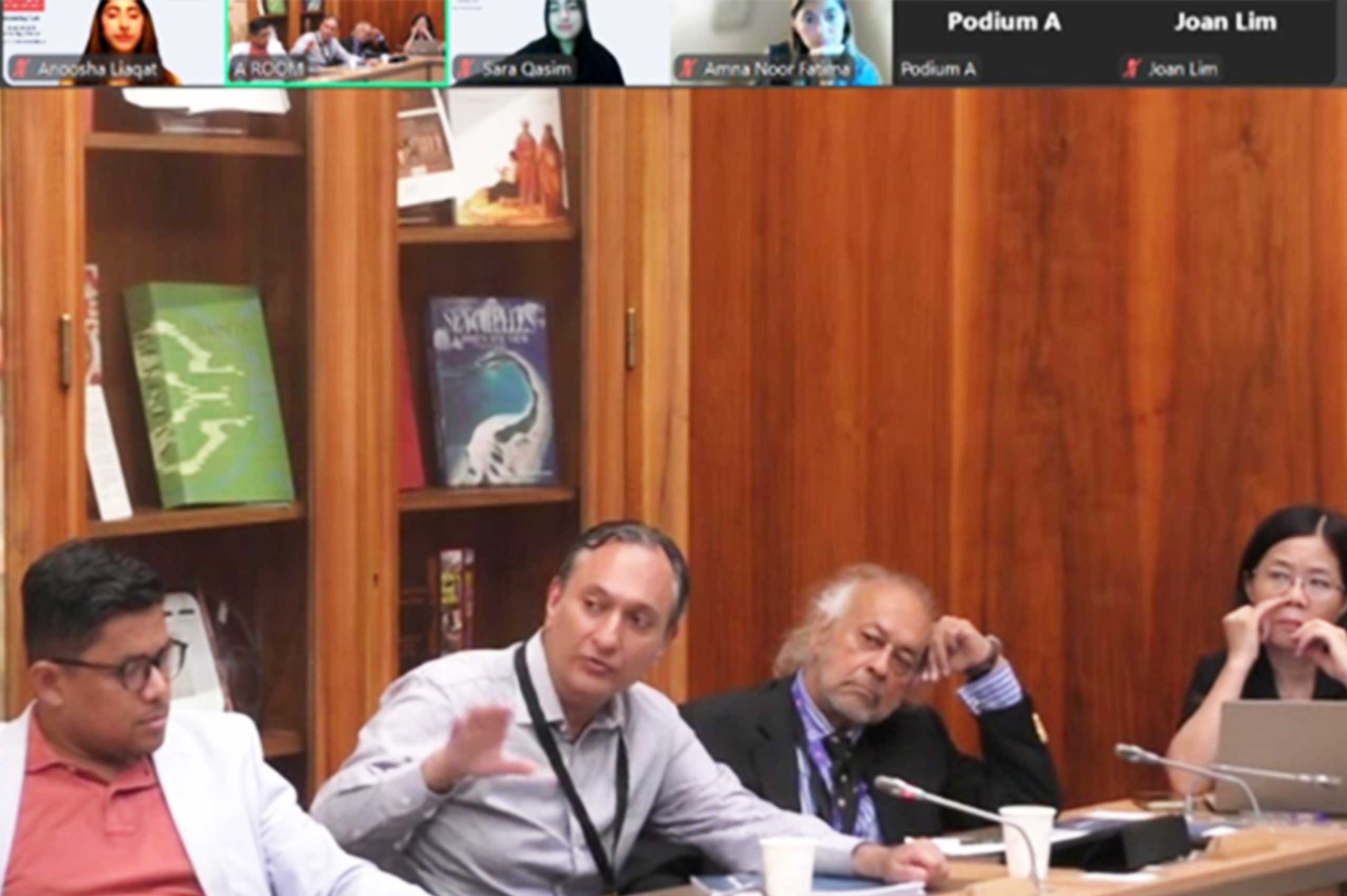 At the World Trade Organization (WTO) headquarters in Geneva, Dr. Azam Amjad Chaudhry (Pro-Rector and WTO Chair for Pakistan) and Dr. Moazam Mahmood showcased Pakistan’s Trade Model, developed by the ITC Modeling Lab team—Amna Noor Fatima, Sara Qasim, and Anoosha Liaqat. The constraint-based model links Pakistan’s external trade dynamics with domestic investment and consumption, offering a detailed view of the country's structural economic dependencies.